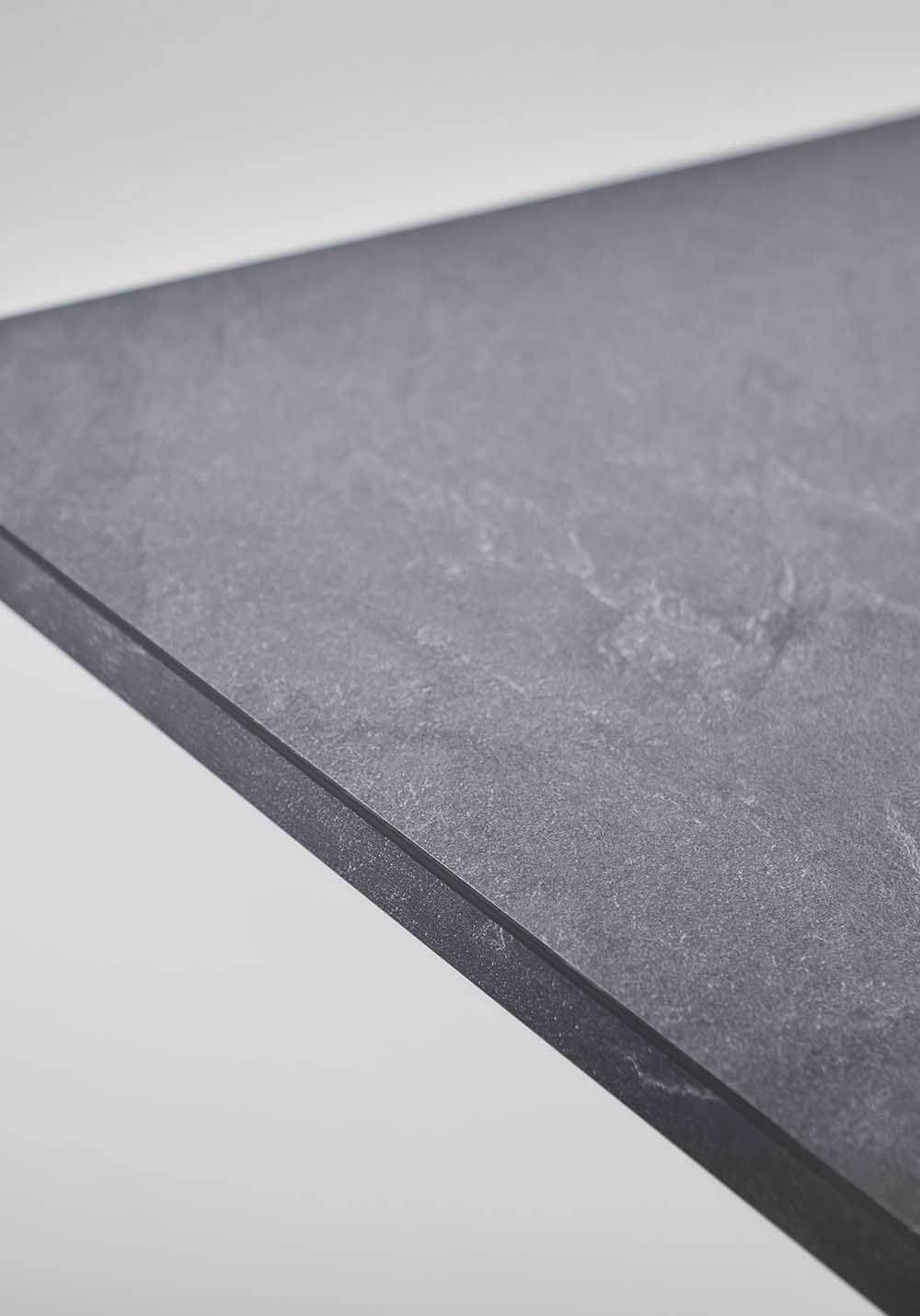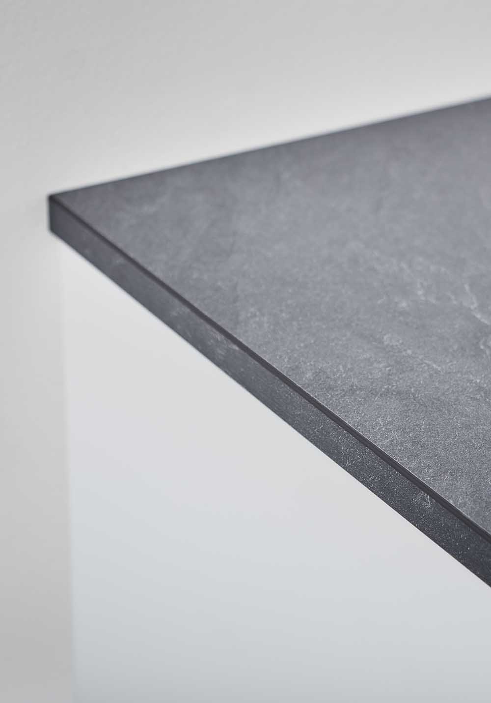 Liuskekivi kuvioitu pöytätaso melamiinipinnoitettua MDF:ää. Reiät porataan asennusvaiheessa hanan ja malja-altaan mallin sekä sijoituksen mukaisesti.