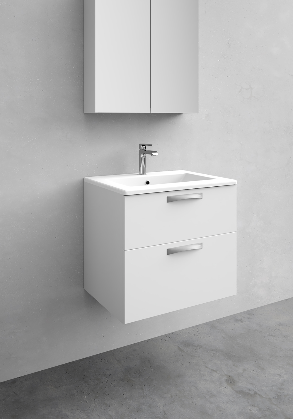 Kylpyhuonekaluste, jonka muotoilu on kauttaaltaan yhtenäinen ja toiminnallinen. City-kalustesarja sisältää laajan valikoiman erilaisia leveyksiä, värejä ja yksityiskohtia, jotka voidaan helposti mukauttaa oman kylpyhuoneesi mukaan. Valitse kolmesta upotetusta posliinialtaasta tai betoniallas. Voit myös halutessasi varustaa kalusteesi kestävällä allastasolla ja malja-altaalla. Pehmeästi sulkeutuvat ja kokonaan aukeavat laatikot. City säädettävät ripustushelat helpottavat asennusta ja säätämistä. Sisältää lokerikon ja irrotettavan pohjamaton. Toimitetaan valmiiksi koottuna. Osta vedin. Vetimen poramerkinnät: CC 64, 128, 160, 256, 320.