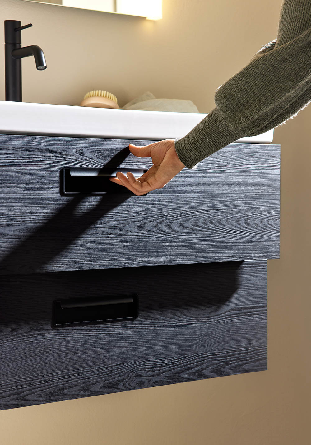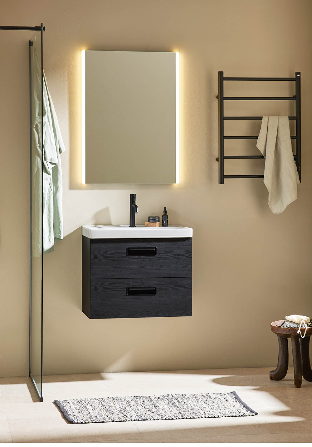 Pesuallaskaappi Relounge Musta Puukuviointi 600 + Pesuallas