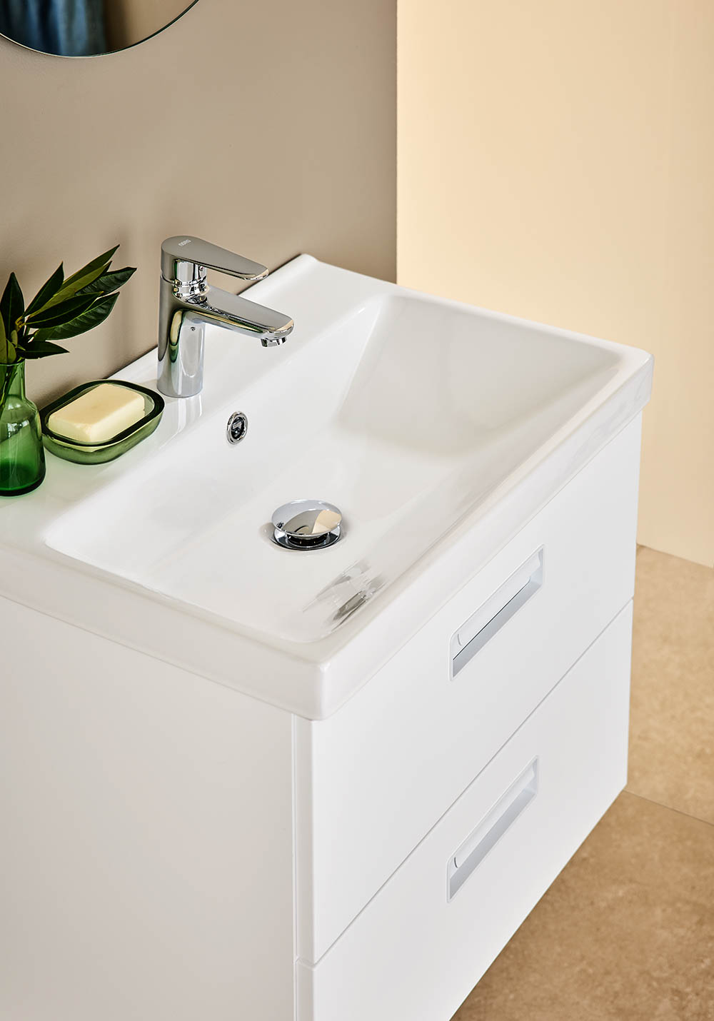 Noro Relounge kylpykaluste, posliini altaalla on tyylikkäästi muotoiltu. Ainutlaatuiset mitat ja integroidut vetimet auttavat luomaan helposti henkilökohtaisen ilmeen kylpyhuoneeseesi. Relounge kaluste antaa ylellisen tunnelman kaiken kokoisiin kylpyhuoneisiin. Saatavana matta valkoisena tai mustalla puukuvioinilla, monella eri leveydellä. Upotettu posliini allas on runsaan kokoinen, ylivuotosuojalla. Toimitetaan koottuna, ja soveltuu viemäriliitäntään seinään tai lattiaan. Helppo asentaa säädettävät asennuskiskon ansiosta. Osta lisäksi pesuallas tai pöytälevy malja-altaalla, pohjaventtiili, viemärisarja, pistorasia ja hana.