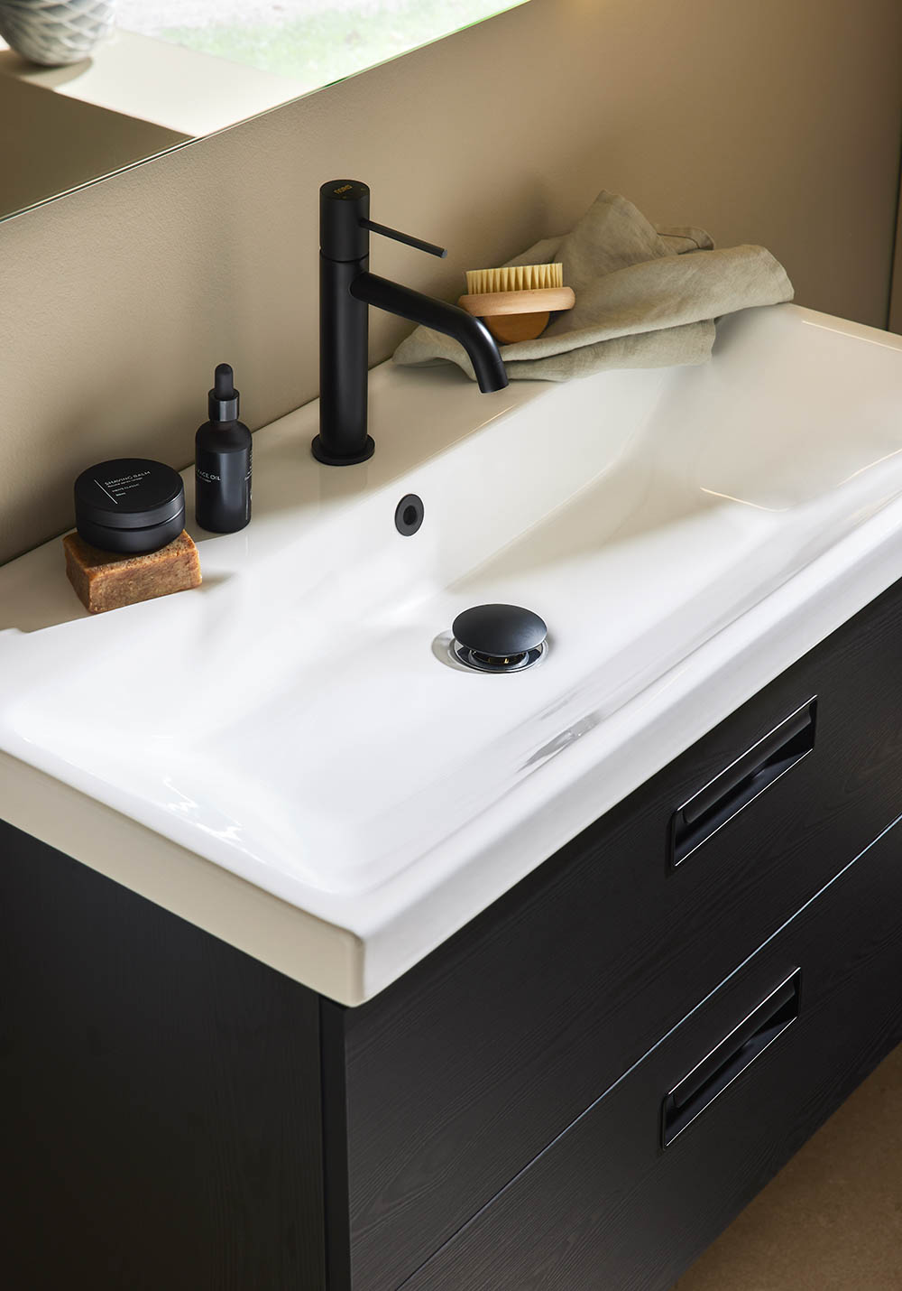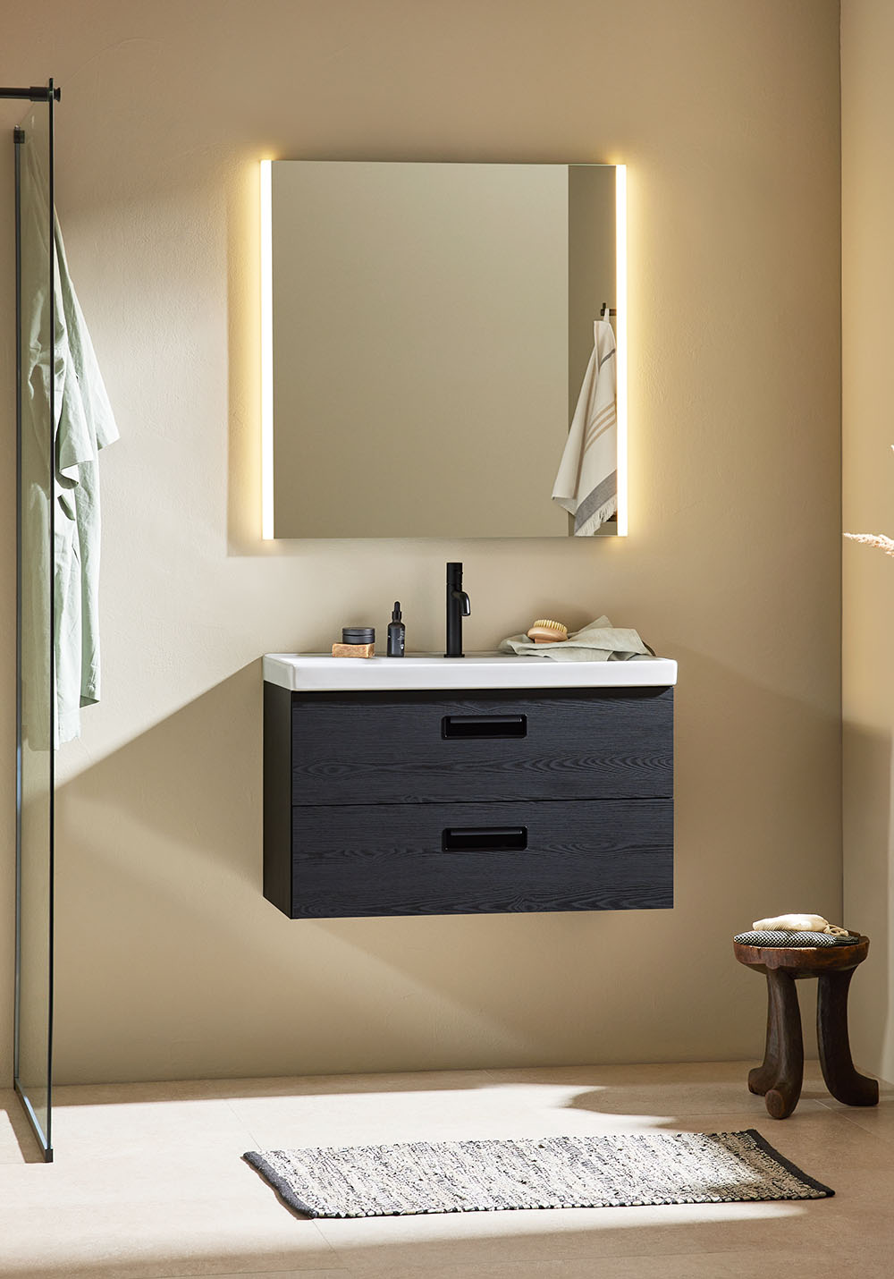 Noro Relounge kylpykaluste, posliini altaalla on tyylikkäästi muotoiltu. Ainutlaatuiset mitat ja integroidut vetimet auttavat luomaan helposti henkilökohtaisen ilmeen kylpyhuoneeseesi. Relounge kaluste antaa ylellisen tunnelman kaiken kokoisiin kylpyhuoneisiin. Saatavana matta valkoisena tai mustalla puukuvioinilla, monella eri leveydellä. Upotettu posliini allas on runsaan kokoinen, ylivuotosuojalla. Toimitetaan koottuna, ja soveltuu viemäriliitäntään seinään tai lattiaan. Helppo asentaa säädettävät asennuskiskon ansiosta. Osta lisäksi pesuallas tai pöytälevy malja-altaalla, pohjaventtiili, viemärisarja, pistorasia ja hana.