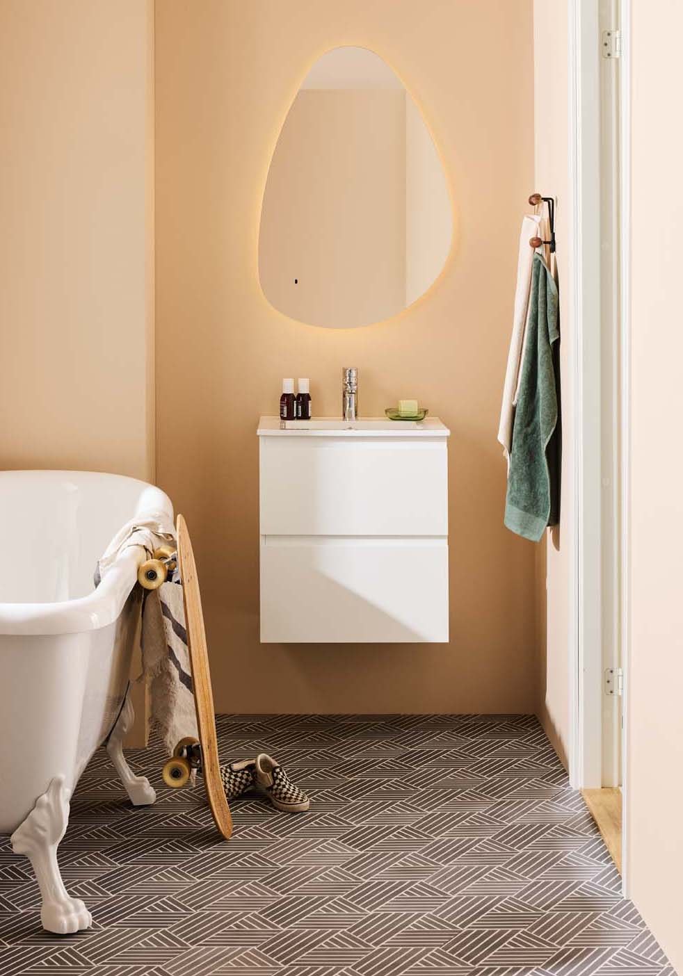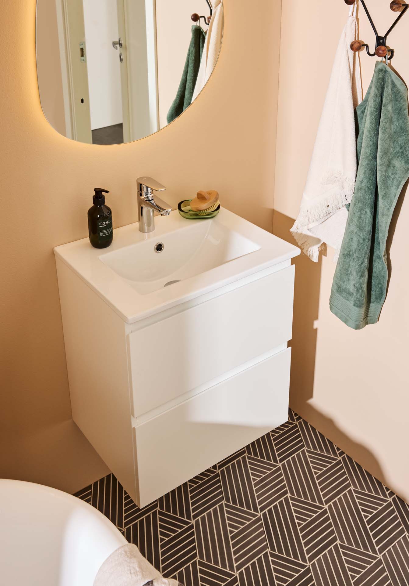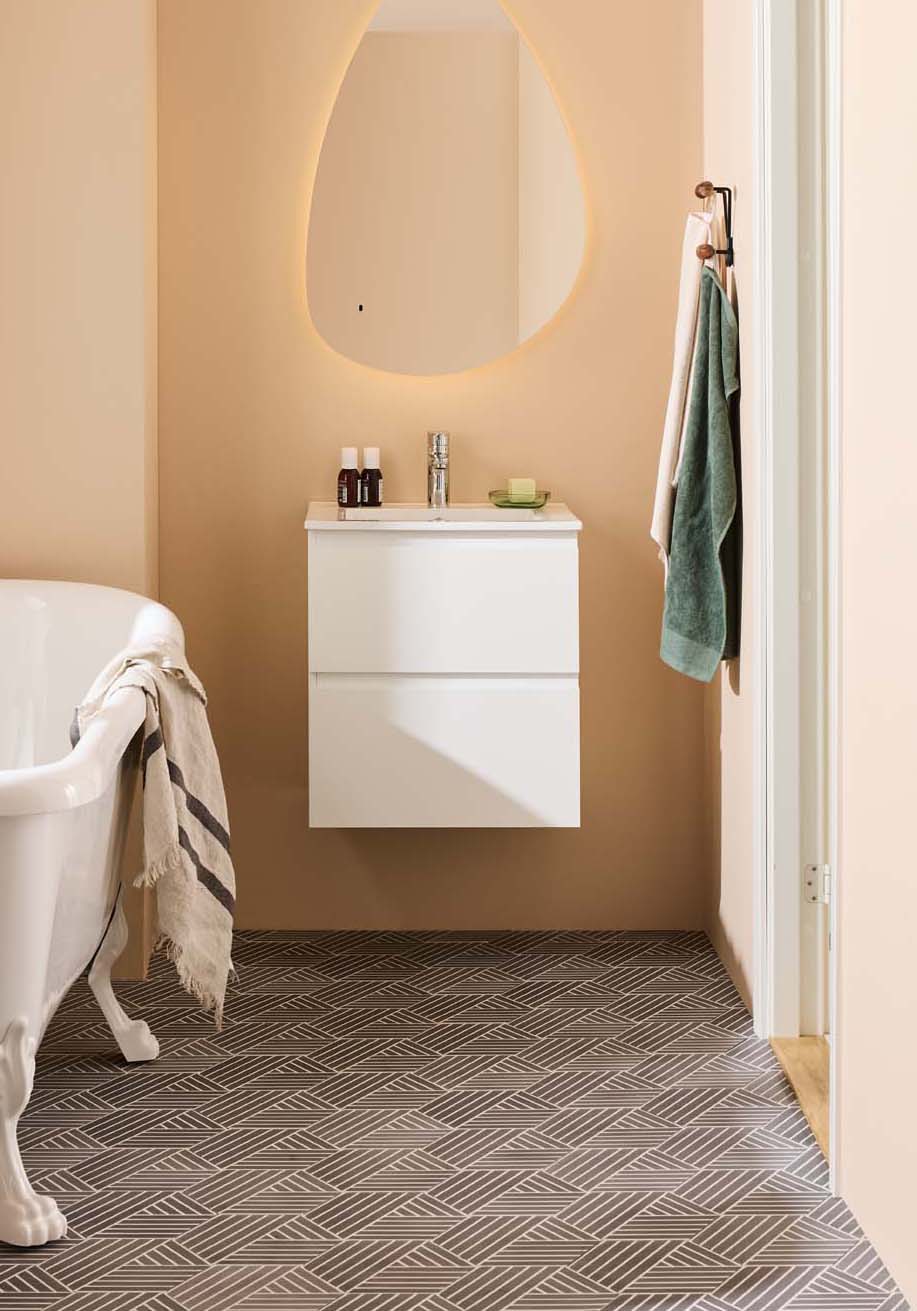 Moderni Noro Vega -allaskaappi on hieman pienemmän kokoinen kaluste ja mukana tulee posliininen pesuallas. Kaksi pehmeästi sulkeutuvaa laatikkoa tarjoavat runsaasti säilytystilaa pieneen kylpyhuoneeseen, ja laatikoissa on integroidut vetimet. Allaskaapin pinta on viimeistelty kestävällä lakkauksella ja kaluste on valmisteltu sekä lattia- että seinäviemäröinnille. Osta mukaan hana, pohjaventtiili sekä vesilukko.