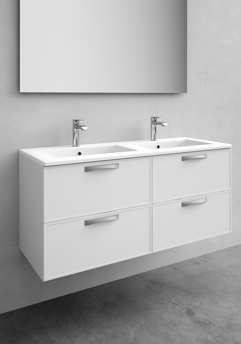 Tulevaisuuden teknologiset vaatimukset saavutetaan klassisella muotoilulla, jossa on ripaus Art décoa. Olemme kiinnittäneet erityisen paljon huomiota yksityiskohtiin ja suunnitelleet kalusteen, jossa laatikoiden etuosan ohut ja tyylikäs kehys antaa tyyliä kylpyhuoneellesi. Vogue on saatavilla useissa leveyksissä ja värivaihtoina ovat matta valkoinen ja antrasiitinharmaa raami etulevyillä. Valitse erillaisista upotetusta posliinialtaista tai MDF-pöytälevy ja sen päälle tyylikäs malja-allas laajasta valikoimastamme. Pehmeästi sulkeutuvat ja kokonaan aukeavat laatikot. Vogue säädettävät ripustushelat helpottavat asennusta ja säätämistä. Sisältää lokerikon ja irrotettavan pohjamaton. Toimitetaan valmiiksi koottuna. Osta vedin. Vetimen poramerkinnät: CC 64, 128, 160, 256, 320.