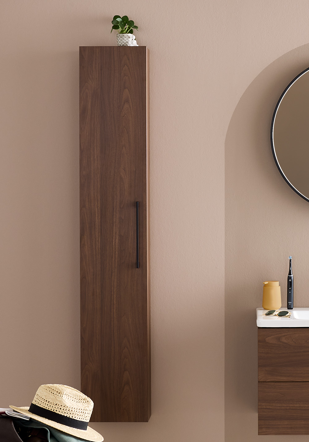Noro Multi on tyylikäs ja toimiva kompakti korkeakaappi, joka luo järjestystä sekä tarjoaa lisää säilytystilaa kylpyhuoneeseen. Multi on varustettu viidellä siirrettävällä hyllyllä, jotka on valmistettu kirkkaasta lasista. Itsestään sulkeutuvat ja vaimentavat saranat sulkeutuvat pehmeästi ja hiljaisesti, mikä lisää laadun tuntua jokaisessa yksityiskohdassa. Kaappi toimitetaan mustalla kahvalla. Korkeakaappi toimitetaan koottuna, ja kaapin ovi voidaan asentaa oikealle tai vasemmalle. Osta mukaan pistorasia.