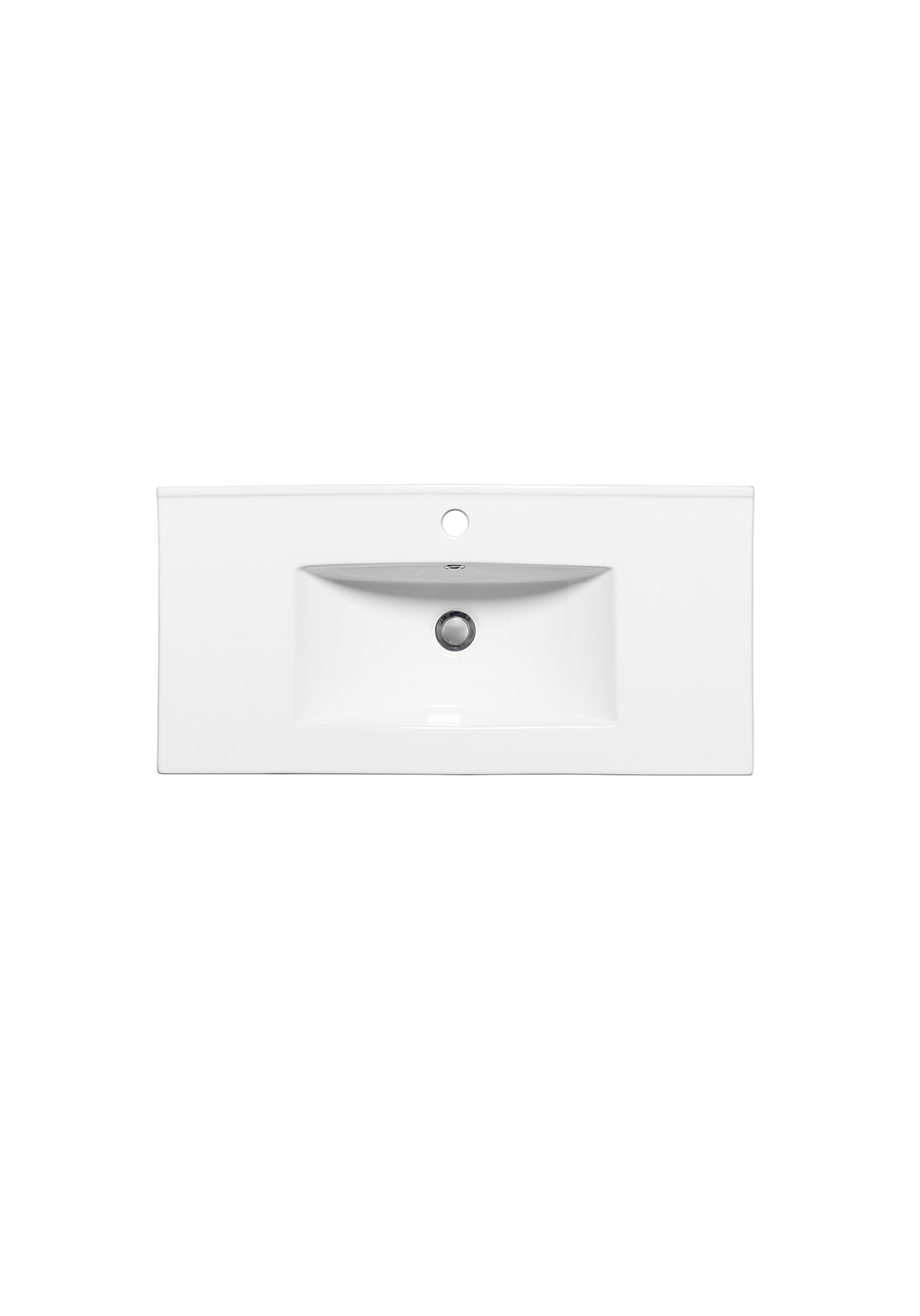 Pesuallas posliinia, ylivuotosuojalla. Toimitetaan ilman pohjaventtiiliä ja vesilukkoa.