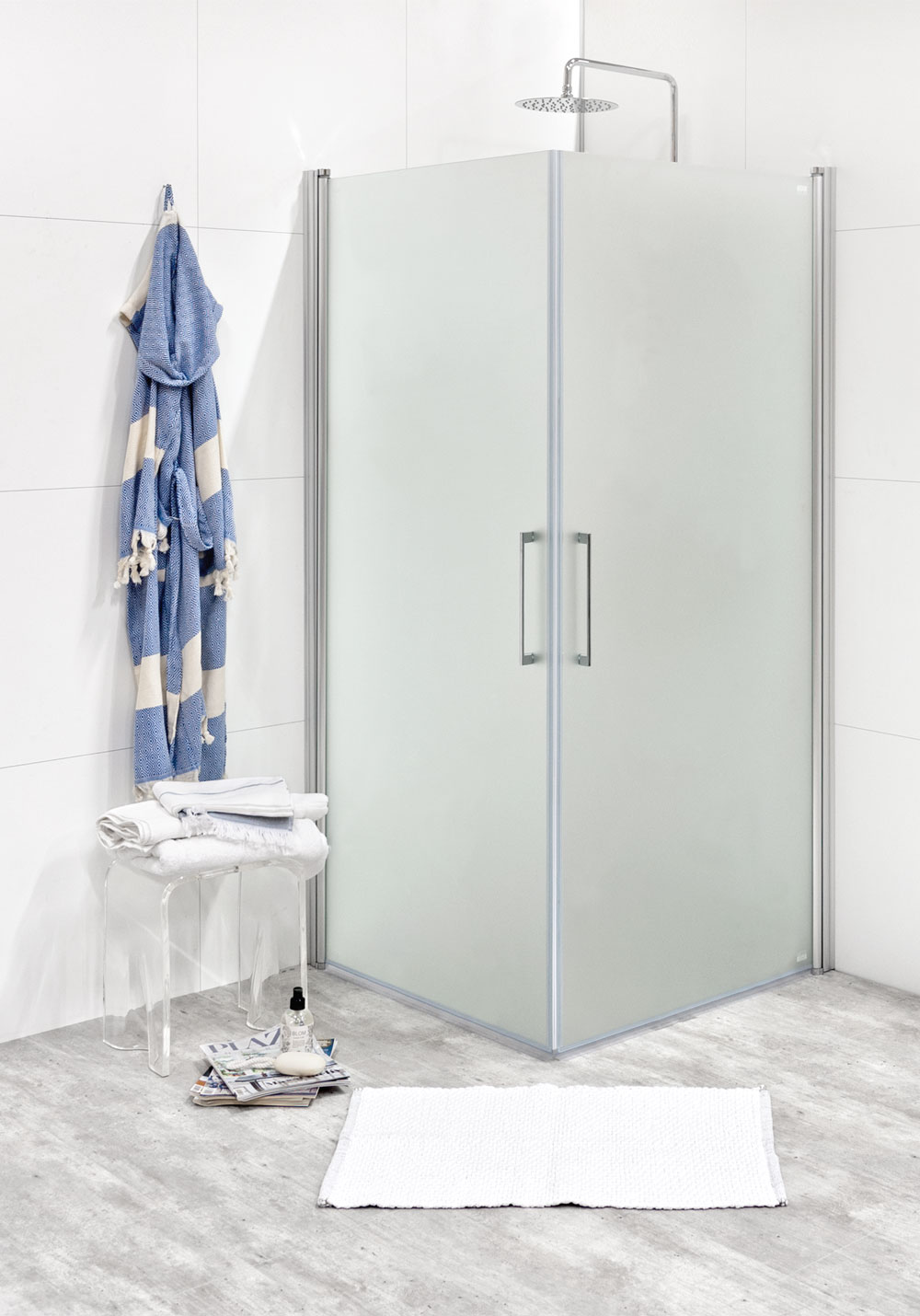Pelkistetyt ja esteettiset suihkunurkat herkuttelijoille. Suihku saatavana eri lasivaihtoehdoilla: kirkas, himmennetty sekä savu. Suihkunurkka 5mm karkaistua lasia ja ovet käännettävissä 180 astetta. Seinäprofiilissa 35mm tilaa ulkopuolisen putkiston läpiviennille. Suihkunurkka on käännettävissä. Sisältää vetimen.