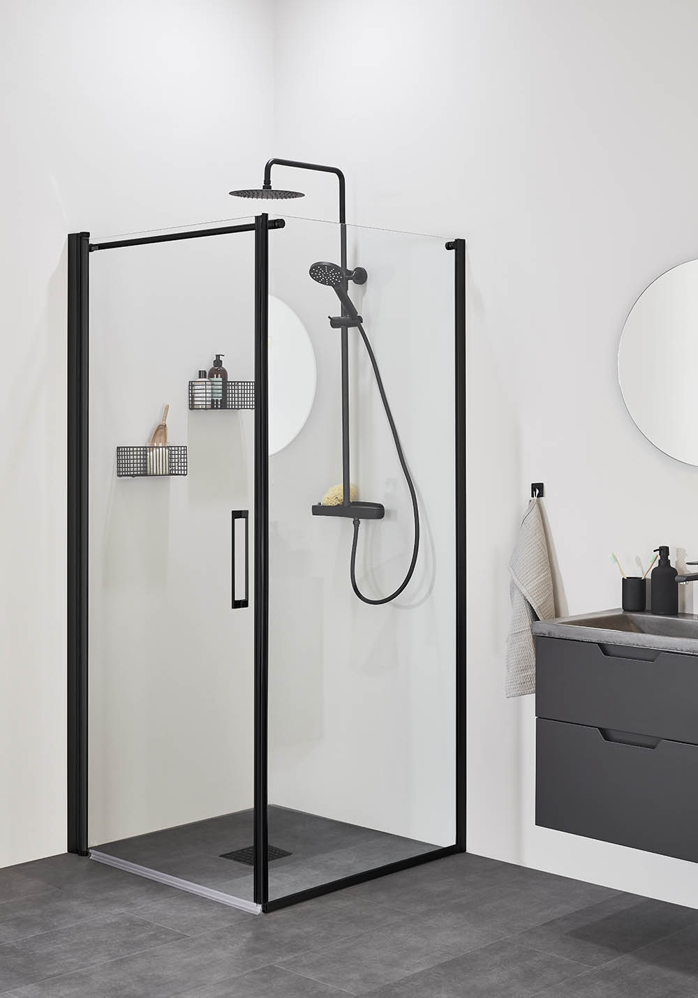 Suihkunurkka Frost Concept Musta Seinä 700 Kirkas Ovi 900 Ki